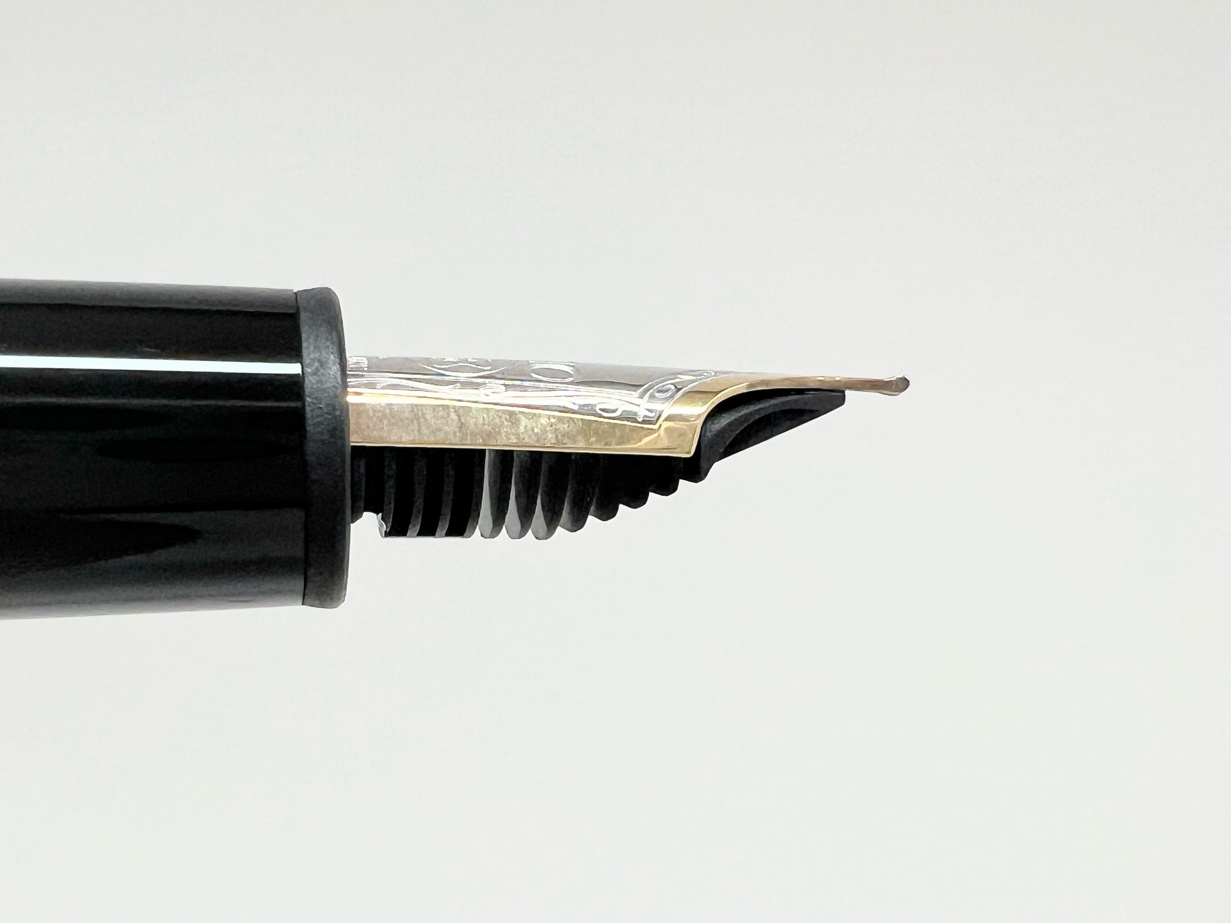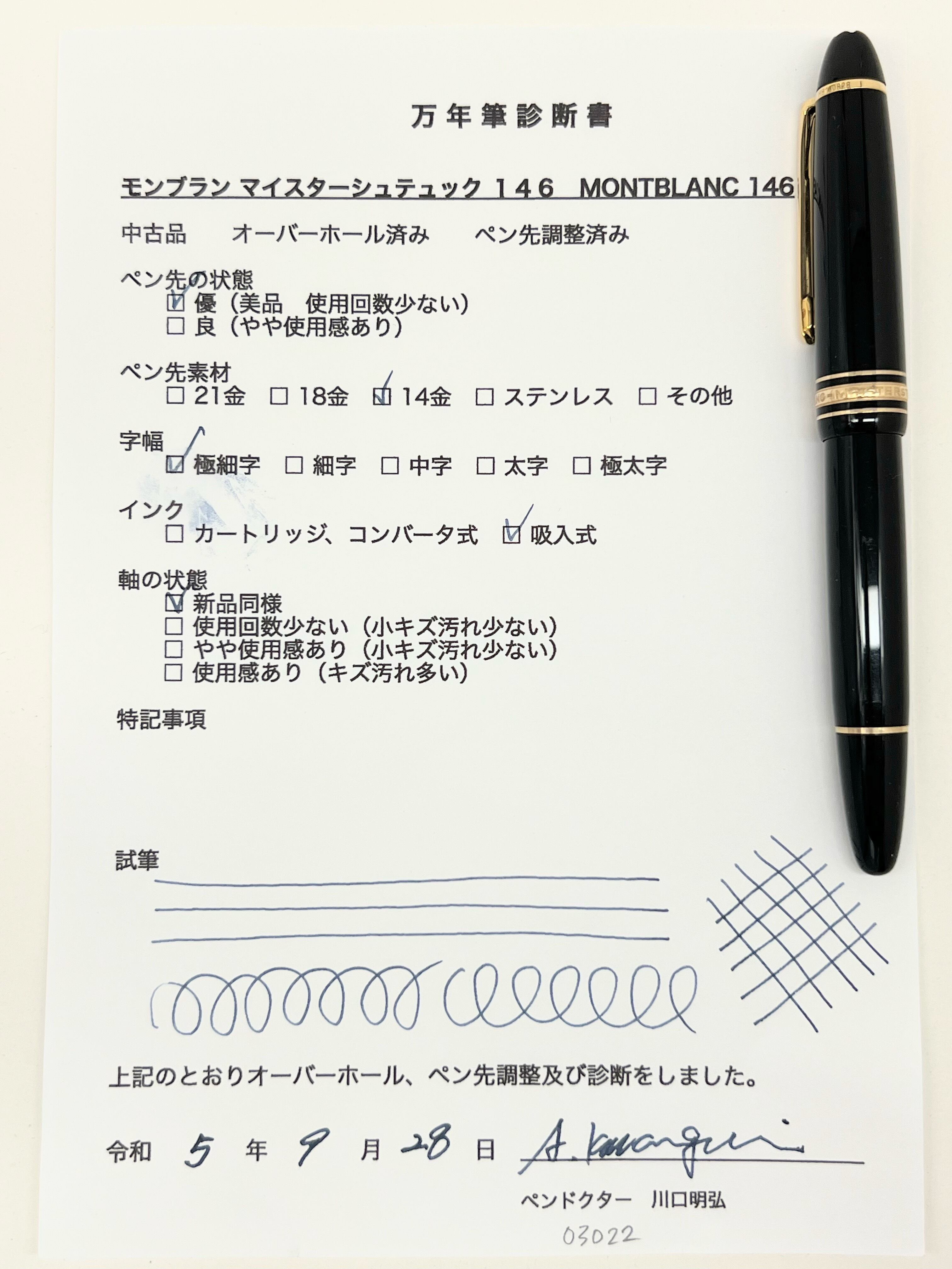 中古品 オーバーホール済み ペン先調整済み 字幅:極細字 *やや太めの極細字です。 インク:吸入式 軸の使用感:新品同様 付属品:万年筆診断書 ========== 1990年代製造 生産終了品 ペン先14金(ペン先表記「14K」) ペン芯プラスチック 吸入良好