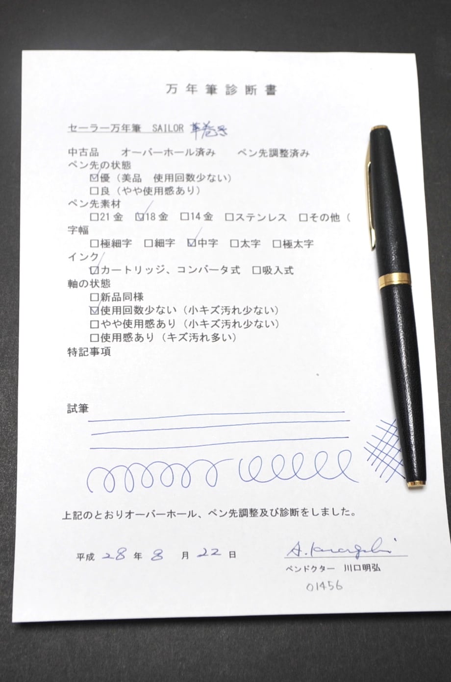 中古品 オーバーホール済み ペン先調整済み 字幅:ペン先表記「4」 中字 インク:カートリッジ式 軸の使用感:使用回数少ない *経年による劣化が見られます。 付属品:カートリッジ1本(ブルーブラック) 万年筆診断書 ========== 1960年代製造 生産終了品 ペン先18金