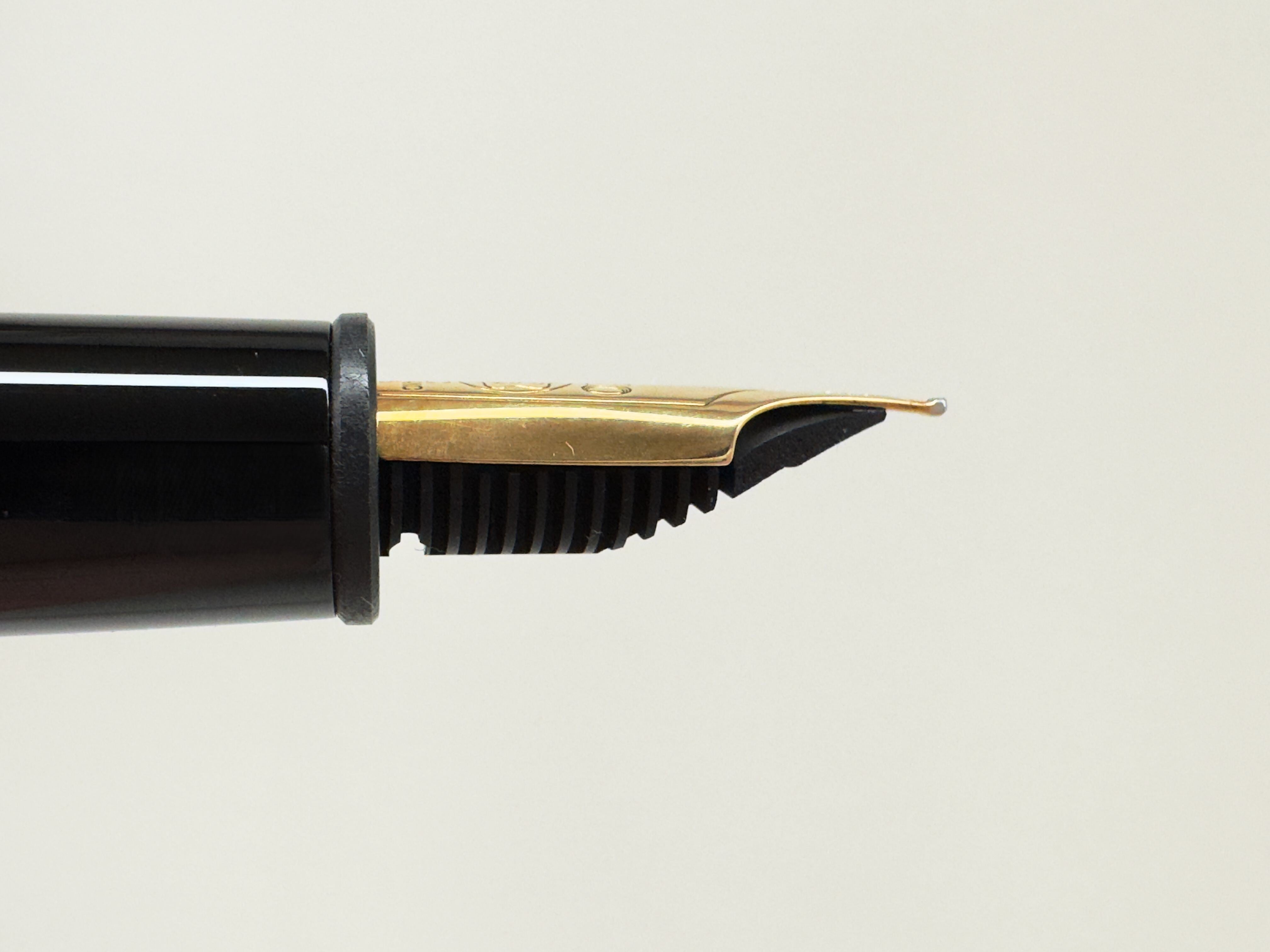 中古品 オーバーホール済み ペン先調整済み 字幅:ペン先表記「F」 細字 インク:吸入式 軸の使用感:使用回数少ない 付属品:ケース 万年筆診断書 ========== 1970年代製造 ペン先14金(ペン先表記「14C」) ペン芯エボナイト 段差あり 吸入良好