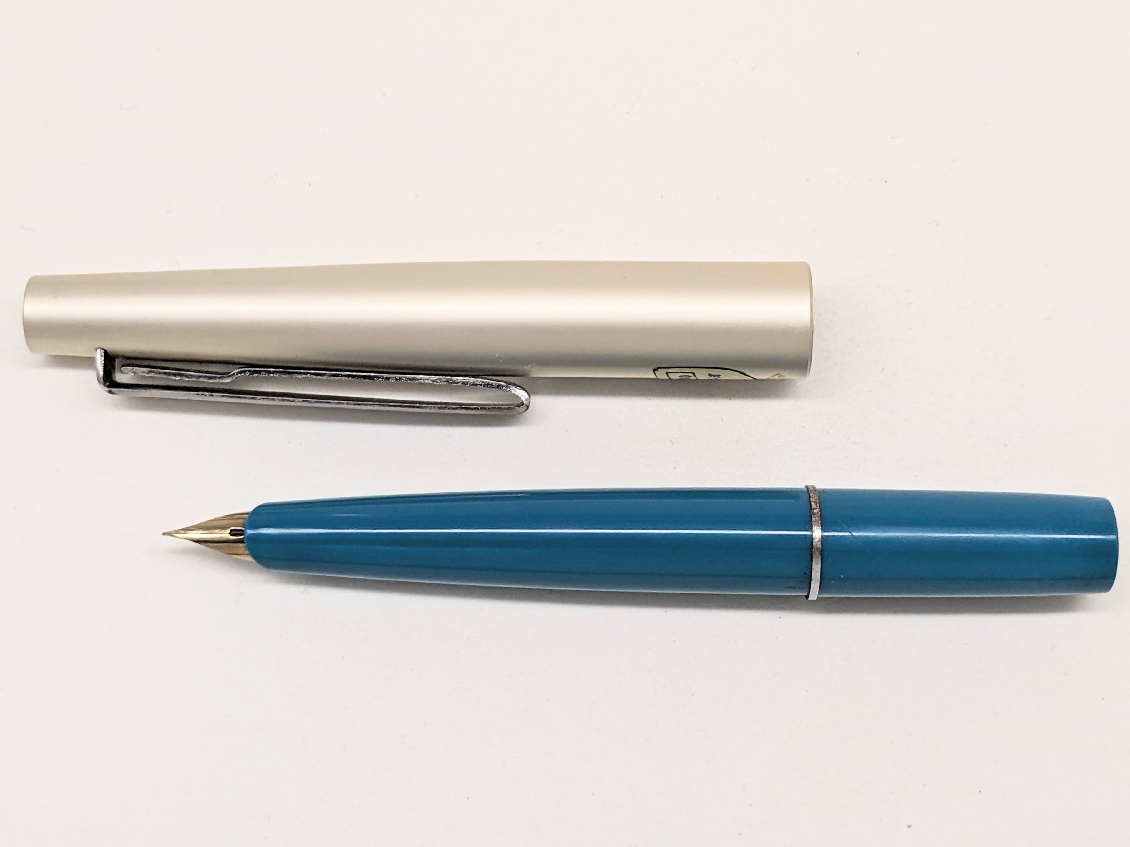 中古品(未使用品) オーバーホール済み ペン先調整済み 字幅:極細字 インク:カートリッジ式 軸の使用感:新品同様 付属品:カートリッジ1本(ブルーブラック) 万年筆診断書 ========== 1960年代製造 生産終了品 当時定価:1000円 ペン先14金 キャップ:アルミ 軸色:青緑(ターコイズ)