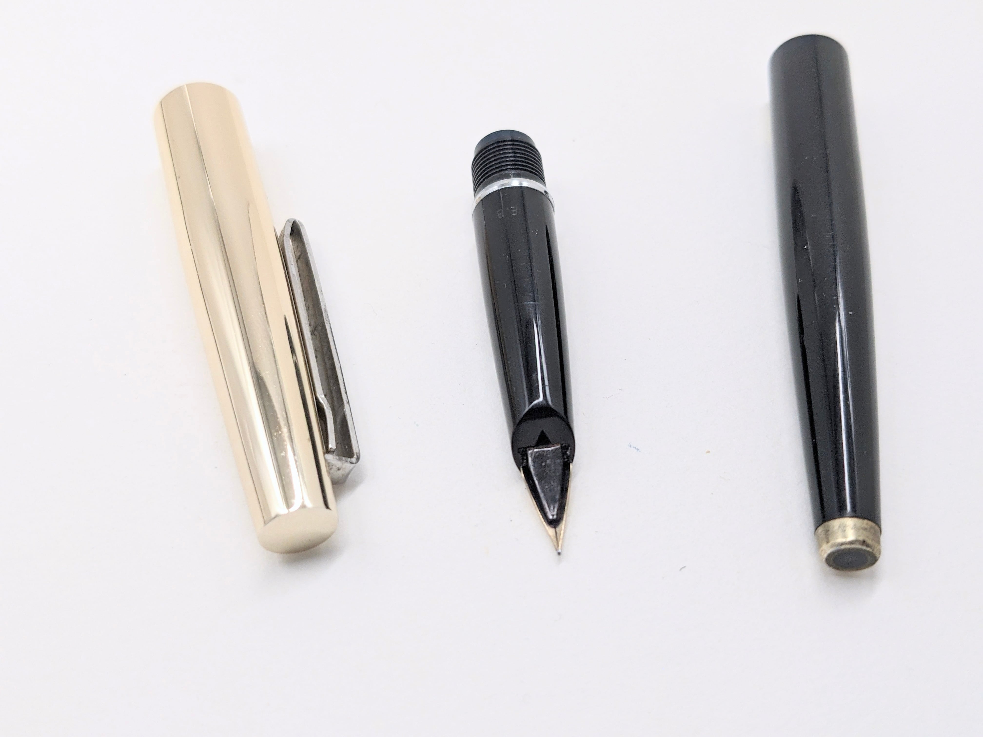 中古品 オーバーホール済み ペン先調整済み 字幅:細字 インク:カートリッジ式 軸の使用感:新品同様 付属品:カートリッジ1本(ブルーブラック) 万年筆診断書 ========== 1960年代製造 生産終了品 ペン先14金 当時定価:800円