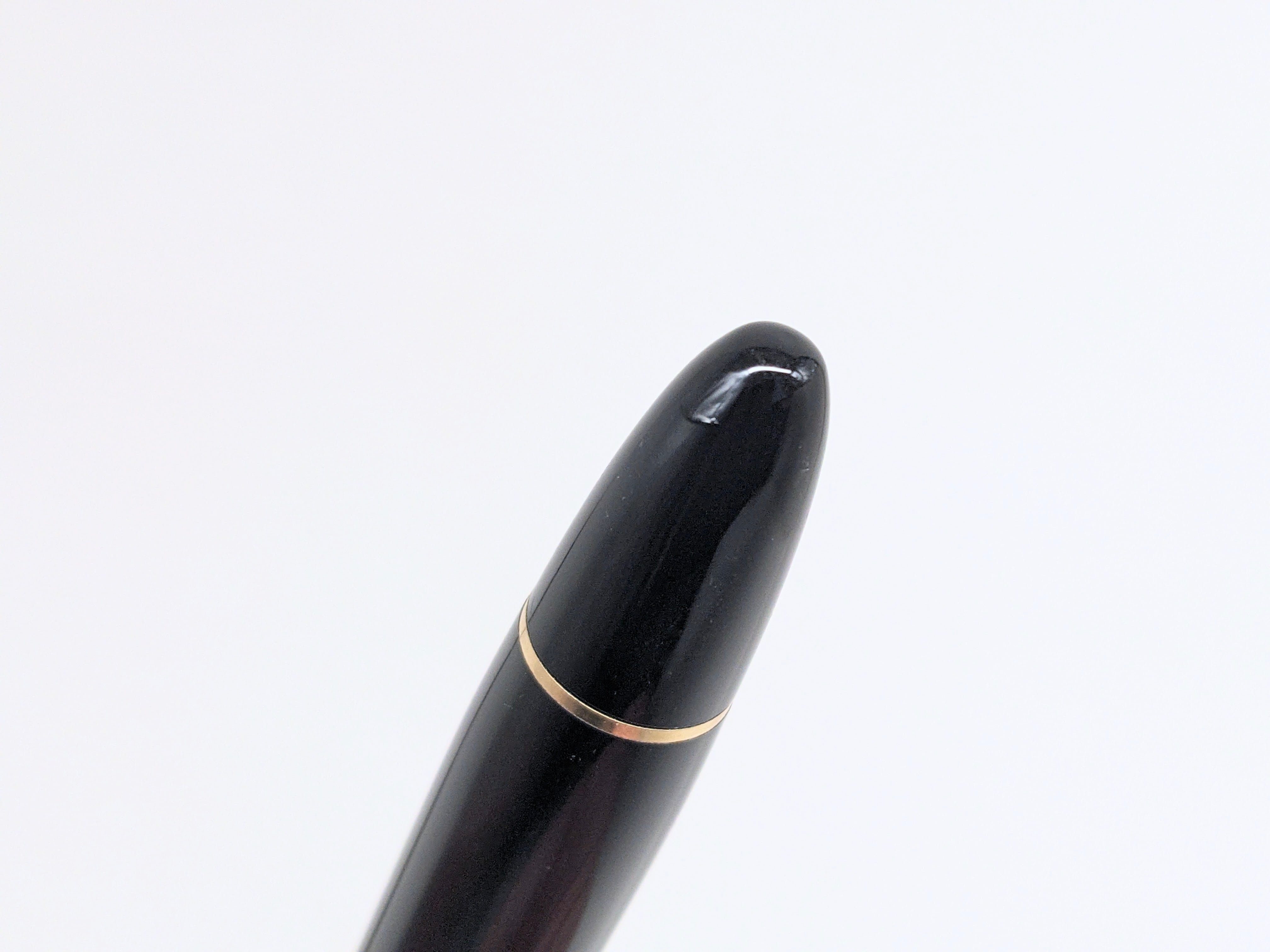 中古品 オーバーホール済み ペン先調整済み 字幅:細字 インク:吸入式 軸の使用感:新品同様 付属品:ケース 万年筆診断書 ========== 1980年代製造 ペン先14金(ペン先表記「14K」) ペン芯エボナイト 溝なし、段差あり 吸入良好