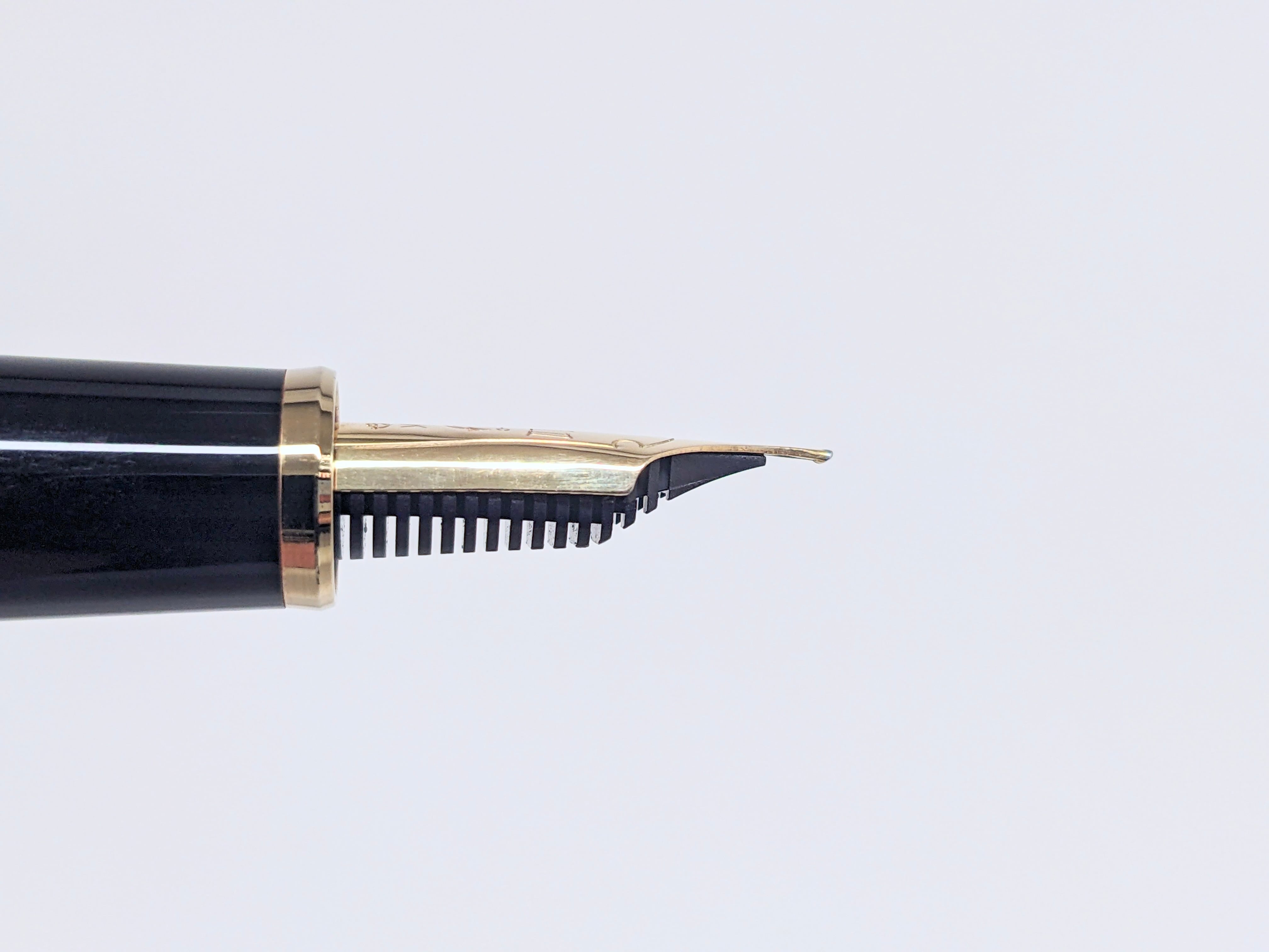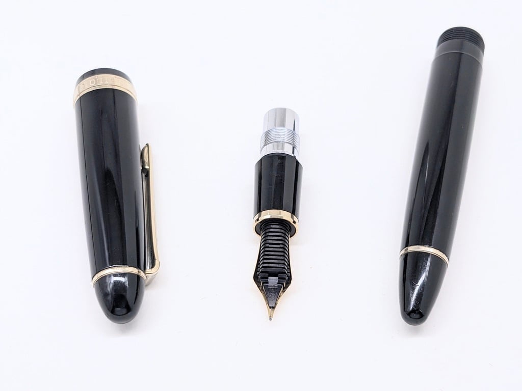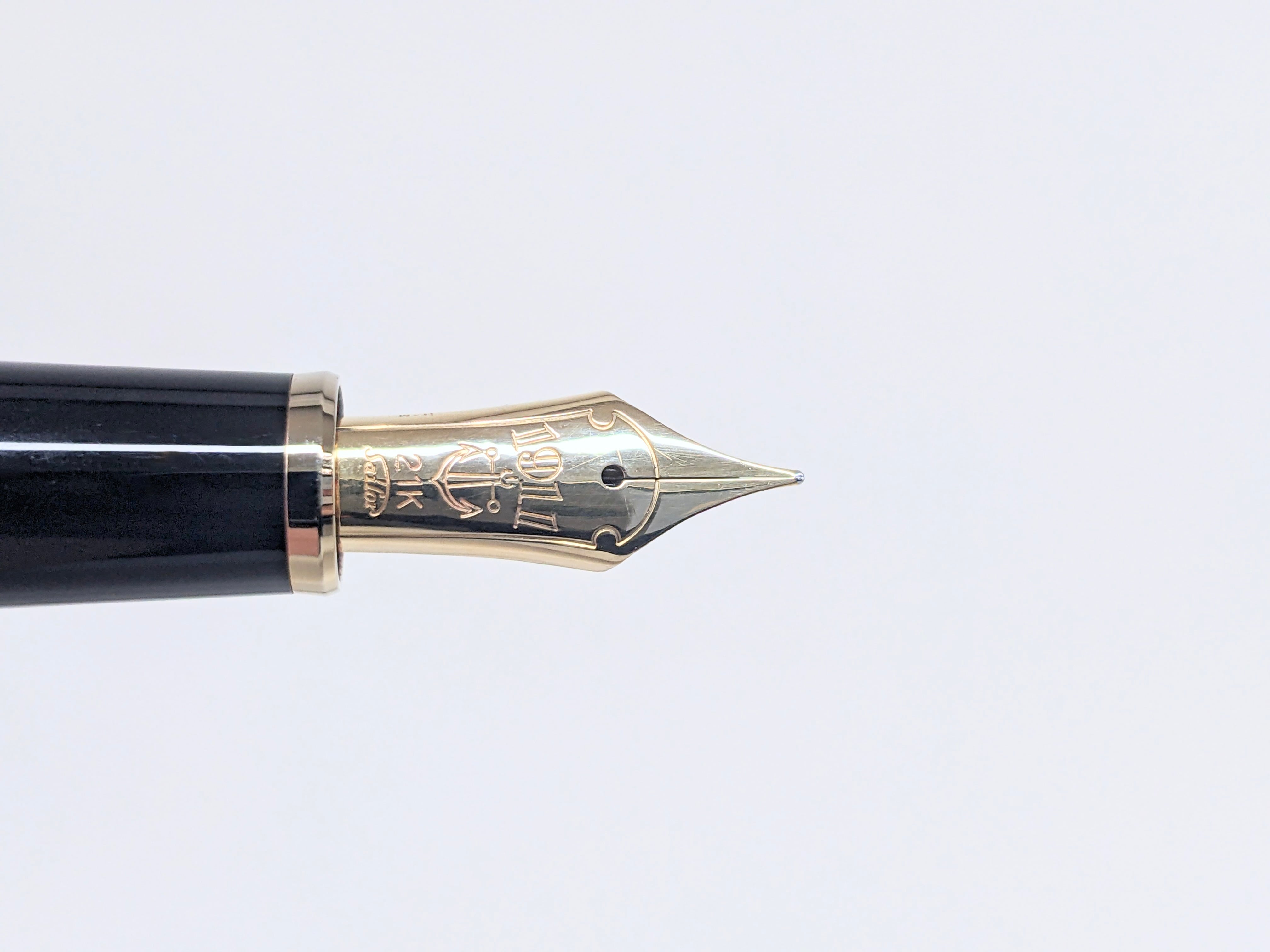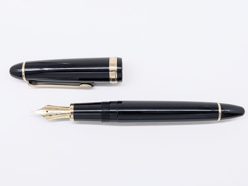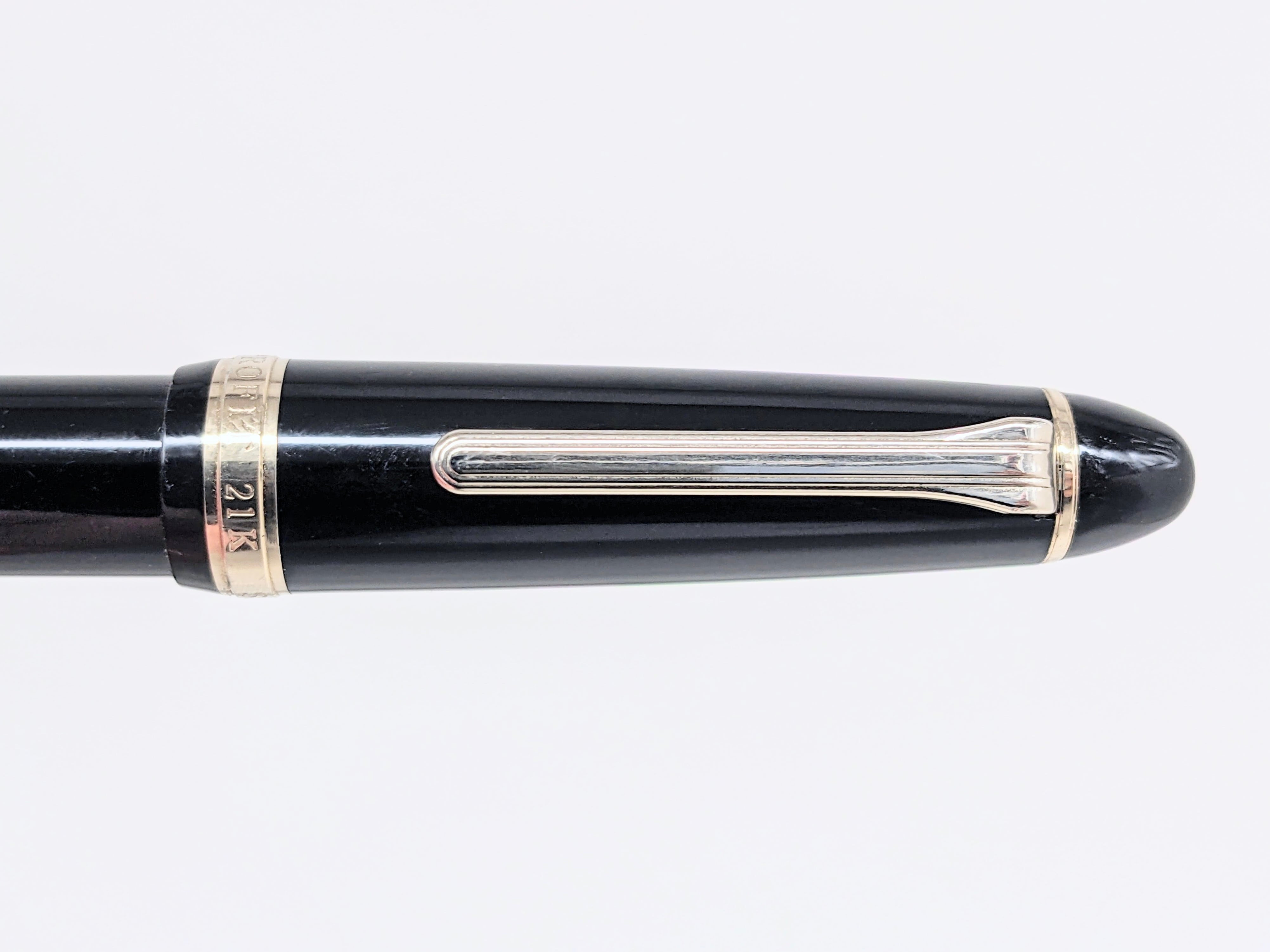 中古品 オーバーホール済み ペン先調整済み 字幅:ペン先表記「HーM」 中字 インク:カートリッジ式 コンバータ式 軸の使用感:使用回数少ない 付属品:カートリッジ1本(ブルーブラック) 万年筆診断書 ========== 旧軸デザイン ペン先21金 本体サイズ:141mm