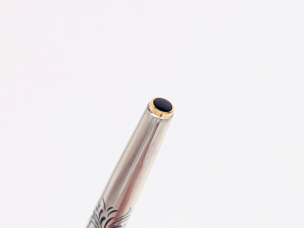 中古品 オーバーホール済み ペン先調整済み 字幅:ペン先表記「F」 細字 インク:カートリッジ式 コンバータ式 軸の使用感:新品同様 付属品:カートリッジ1本(ブルーブラック) 万年筆診断書 ========== 1970年代製造 生産終了品 当時定価:8,000円 ペン先18金 軸:ステンレス軸(彫刻、着色)