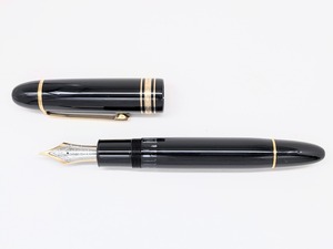 中古品 オーバーホール済み ペン先調整済み 字幅:中字 インク:吸入式 軸の使用感:使用回数少ない 付属品:万年筆診断書 ========== 1970年代製造 ペン先14金(ペン先表記「14C」) ペン芯エボナイト 溝なし、段差あり 吸入良好