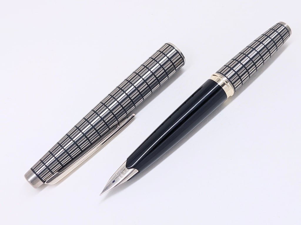 中古品 オーバーホール済み ペン先調整済み 字幅:ペン先表記「F」 細字 インク:カートリッジ式 軸の使用感:新品同様 付属品:ケース カートリッジ1本(ブルーブラック) 万年筆診断書 ========== 1974年11月製造 「H476」 ペン先18金