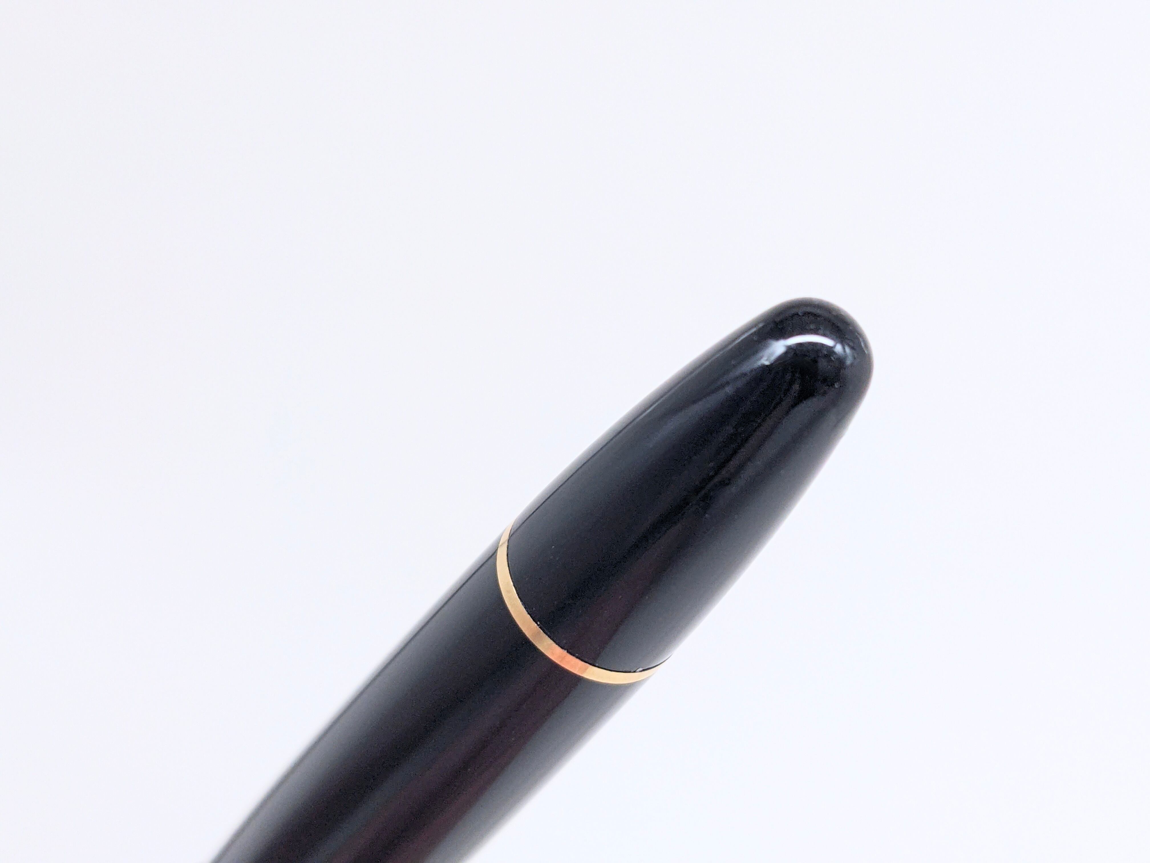 中古品 オーバーホール済み ペン先調整済み 字幅:細字 インク:吸入式 軸の使用感:新品同様 付属品:万年筆診断書 ========== 1980年代製造 ペン先14金(ペン先表記「14K」) ペン芯エボナイト 段差あり 吸入良好