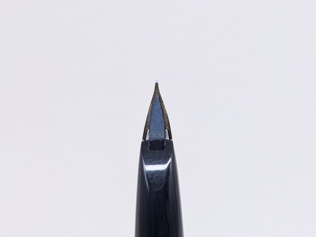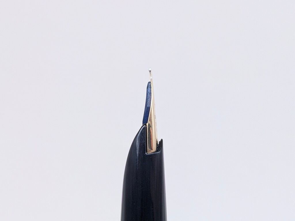 中古品(未使用品) オーバーホール済み ペン先調整済み 字幅:ペン先表記「M」 中字 インク:カートリッジ式 コンバータ式 軸の使用感:新品同様 付属品:カートリッジ1本(ブルーブラック) 万年筆診断書 ========== 1979年9月製造 「H979」 生産終了品 ペン先14金 当時定価:3,000円 〄 全長:119mm