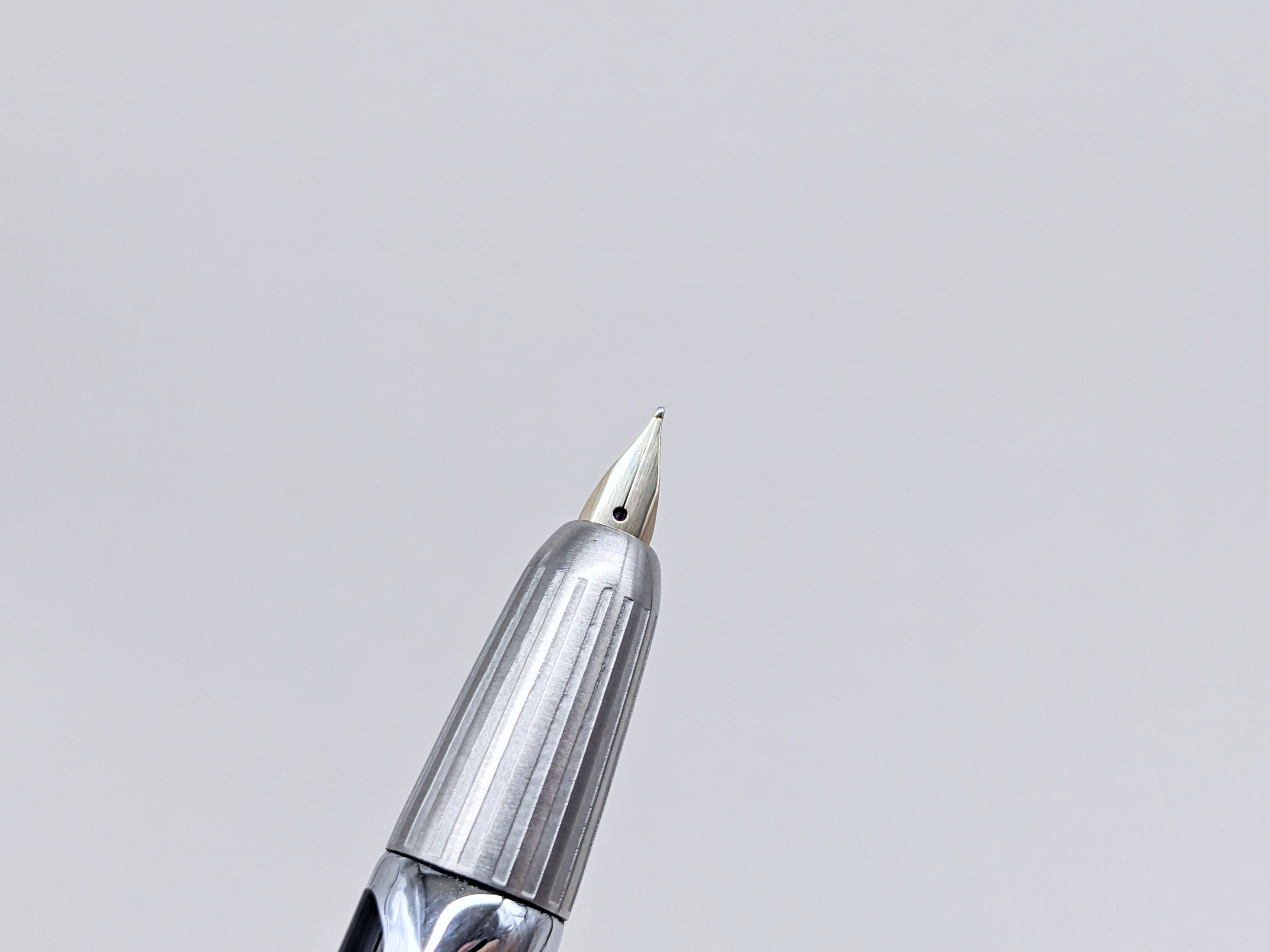 中古品 オーバーホール済み ペン先調整済み 字幅:ペン先表記「F」 細字 インク:カートリッジ式 コンバータ式 軸の使用感:新品同様 付属品:カートリッジ1本(ブルーブラック) 万年筆診断書 ========== 1970年代製造 生産終了品 ペン先14金(ペン先表記「14K」) 吸入良好 型番:C-400SS 全長:140mm(ペン先収納時)